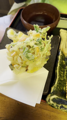 Read more江戸せいろを戴きました。 日光江戸村の江戸時代のもりそばを再現した【味噌ダレ】との事、巨大掻き揚げが人気なのだそうですが、朝食が割と遅く、此処へ入店したのが早かったので掻き揚げは注文しませんでした。 お蕎麦は業務用又は准手打ちの様です。 まあ、喉越しは良いのかもしれませんが、蕎麦の風味がしない。 味噌ダレ蕎麦つゆは、今の醤油蕎麦つゆに慣れているので不味いわけではないが、美味いってほどじゃなく正にしゃぶしゃぶ等で使う味噌ダレの薄い版って感じで今回はドップリとタレに蕎麦を浸して食べました。 ま、蕎麦に興味の有る方は話のタネにって感じですが、ワザワザの必要も無しで別の種類のランチが良いかも・・・的な助言をしておきます。 あと味噌ダレのせいか蕎麦湯は出てきませんでした。 蒸篭蒸し蕎麦が製法の建前なので茹で蕎麦と違い蕎麦湯の概念がないかもです。 味噌ダレを少量の水で薄めて飲みましたが、確かに飲むもんじゃ無い。 九百八拾円を九百八十両って言ってた所に昭和の親父ギャグの様でスルーしました。 文とか銭...