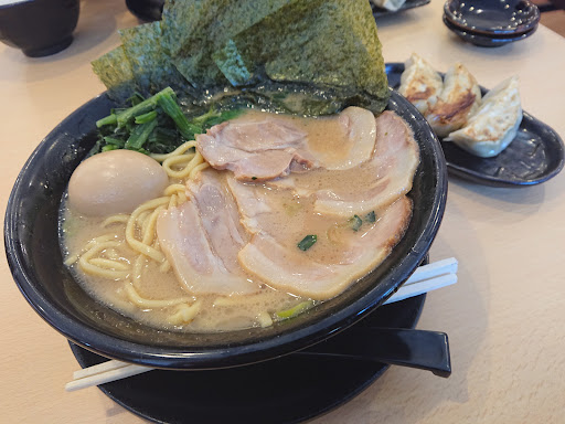 ■減点項目 ・フェンス側及び眼鏡市場側の駐車スペースの鉄板が“く”の字に凹んでいてクルマによっては停めるのを躊躇うのではないか ・提供が非常に遅い。来店時に待っている人がいたので食券購入後、名前を書いて10分近く待つ。カウンター席に呼ばれるも8割近くは空席、待つ必要はあったのかと結局そこから20分以上待たされてぬるめのラーメンを出される。 ・ランチタイムはライス無料、これは良い。ただしラーメンと同時に提供できればの話だ。食券購入時にライスのボタンに×、販売機上部を見るとランチタイムはライス無料、つまり無料のライスは提供が遅くなりますということ。ぬるいラーメンを半分たいらげた時点でライスが来ても断ることを決意。自分は乞食じゃないのでライスぐらい金払うのでラーメンと同時に持ってきてもらうのを選びます。次からは販売機に「すぐ提供!ライス!」をお願いします。え、今から炊く?ごめんなさい。 ・店員に活気がない。当方は家系チェーン店ジャンキーではないので、何がいいとか悪いとかは分からないのですが、家系自体活気がある方が面白いと思うので町田商店鹿沼店を参考にしてください。開店して9ヶ月近く経ちますが飽き足らず店員の声出しが徹底されています。これはあくまでも自分の主観なのであしからず…。