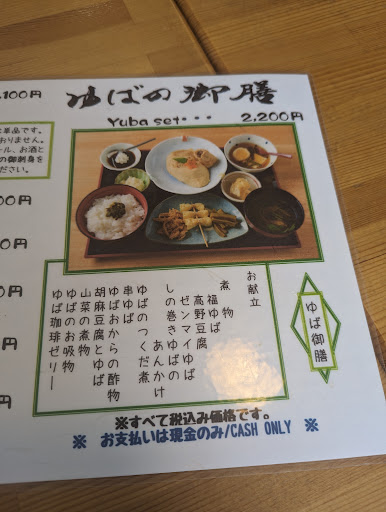 Wow 😍😍what an amazing and special experience!!! I LOVE yuba and this place really made it extra special. I'm vegan and most of the time in Japan, it's impossible to get clear answers about what has dashi or bonito or gelatin in it. Here, they have a perfect display detailing what has what so vegans and vegetarians can beware. I haven't seen that type of consideration anywhere else in a small place like Nikko so that was so kind of them.