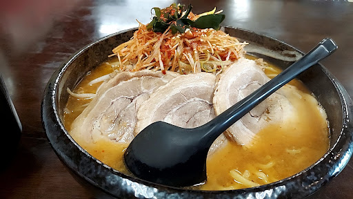 2025年10月15日 水曜日の夕方、18時前ぐらいにうかがいました。 カウンター席はお一人様が3人ほど、テーブル席が3名様1組 空きは2人掛けと4人掛けのテーブル席が1つずつ 座敷もあります。 座敷は掘り座卓になっていて、ベタッと座れない方でも大丈夫そうです。 2人掛けのテーブルに着き、私は野菜たっぷり味噌ラーメンを注文 妻はネギ味噌チャーシュー麺が良かったようですが、チャーシューが品薄とのことで、チャーシュー1枚200円のトッピングにとどめてネギ味噌ラーメンを注文 妻は太麺苦手で細麺に変更 細麺も選べるのはありがたいです。 餃子1枚を二人でシェア 野菜たっぷり味噌ラーメンは、野菜の量がすごいです。 麺より多いかも? 野菜が香ばしく炒められていて、とてもおいしい。 ネギ味噌ラーメンは、レンゲが2個付いてきて、なんで?と思ったら、1個は穴あきの具をすくう用でした。 具に挽き肉が含まれていて、なるほど!こういう心遣いは大変うれしいですね。 ネギ味噌ラーメンも、餃子もとてもおいしかったです。 二戸で一番おいしいラーメン店だと思います。