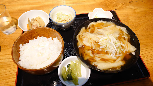 Read more米にこだわりは無い人間(地元で有名なゲコ亭でも何も思わなかった)なんですが、白飯がめちゃくちゃ美味かった。 何かヤバいモンが入ってるんじゃないかと思うぐらい好みで旨い米だった。 特に推してる様子もないけど、一粒一粒立って軽やかで、香り、旨味、ツヤどれも良い。 新米にもまだ早いと思うけど… 炊き方が上手なのか? 三戸産のお米だそうです。 今回の旅行で一番旨かった食べ物かも。 ご当地グルメのひっつみはきちんと作られてるのはわかる(から、☆はマイナスしない)けど、残念ながら関西人には合わなかった。 出汁感が薄くお湯に濃口醤油を溶いだけのうっすら酸味を感じるような、そこに白ネギのギスギス感をプラスした…東日本によくあるお出汁の味。ただの好みの問題だけど、この出汁は関西人には本当に理解出来ない… ロードサイド店の割には注...