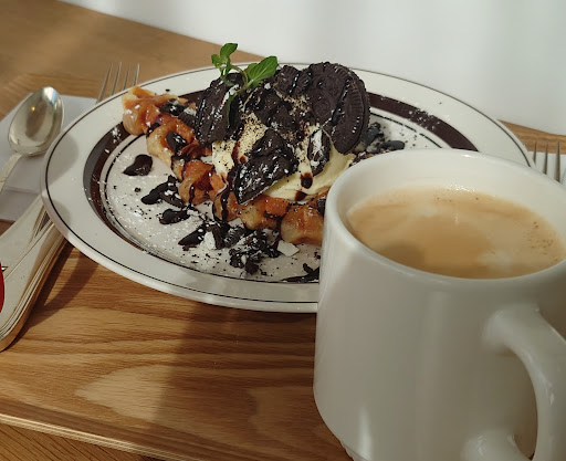 クロッフルは見た目はワッフルですが、カリカリモチモチではなくバター風味のパリパリ生地。 バターの風味と甘さに甘くないオレオ、そしてアイスの甘さが合わさると、甘い甘くない甘いの三昧の相乗効果で素敵な一品に。こっちは誰もが好きな味。 ちょうど良い甘さがコーヒーのアテのデザートとしては最高です。