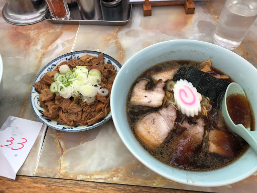 注文が終わってからネットで口コミを覗いたら しょっぱい、美味しくないとの書き込みもチラホラ。少し心配になりましたが杞憂に終わりました。 見た目のスープはたしかに黒いけどしょっぱくもなく(夫はしょっぱかったみたいです。でも美味しいと言ってました)、中太の卵麺が美味しい!シャキシャキネギとチャーシュー(これは確かに少し硬め)も良き!お値段、回転率、接客、それぞれが良いバランスで取れていてまた来店したいなぁと思います。 モツも柔らかくしっかり味がついていて、小皿で頼めば良かった…小々ライスを頼んだら思ってたより量が多くて(大人のご飯茶碗一杯程) 下町価格でした!(安くていっぱい食べさせてあげよう的な気概を感じたという意味です) カレーライスも量が多く甘口だけど後から少し辛味がくる感じでしたがもつ煮やラーメンと比べるとパンチが弱いかな。 お店の人は気のいいおばちゃん、おじちゃんな感じで馴れ馴れしくもなく、かといって気難しい感じもなくハキハキと、そして細かい気遣いをしていただき快く過ごせました。