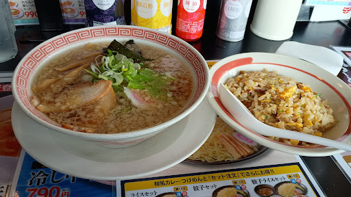 Read more11時過ぎに訪れる。先客3組といった具合でした。店員さんにカウンターに誘導される。タブレットをタッチしてもすぐには動かない。毎週ラーメン食べ歩いてますが、チェーン店は行くことが少ないので少し戸惑う。多分幸楽苑さんは初めて伺いました。 背油醤油(590円)にランチセットで安くなっているチャーハン(300円)をオーダー。麵の硬さとか選べるのですね。 提供まで8分要しました。混雑具合を考えると満席近くまでなったら結構待たされそうな感じ。 提供された背油ラーメンですが、背油って中途半端な感じが否めない。醤油に少し追加しました感。過ぎないのは万人受けを目指すチェーン店だからでしょうか。麺は意外とおいしかった。値段考えるとなかなかよかった。 チャーハンは少し油が多い気がしました。油少な目とか選べたのでしょうかね? 総じて良からず悪しからず...