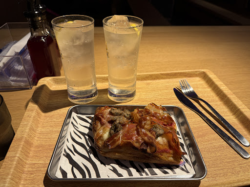While I waited for my husband I decided to get a “sneaky pre-dinner slice” of the meat pizza. I tapped my phone without really thinking about the price I’m being paid, but as I went to sit down I thought to myself “did I just pay AUD$32 for a 3cmx4cmx2cm slice (or as I would call it, “chunk”) of pizza… surely they charged me for 2 drinks instead of 2 for 1. Nope, checked the price for the “chunk” and it’s seriously ¥2,500!