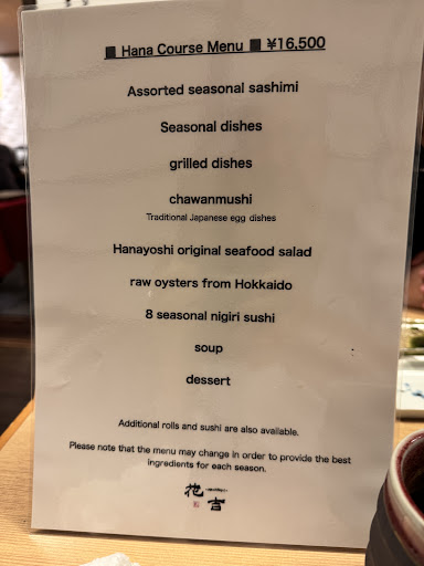 Staff was accommodating to foreigners, but sitting at the bar was an underwhelming experience. Having dined with Michelin Starred sushi restaurants in Tokyo, it was clear that there was a huge gap between them and Hanayoshi.