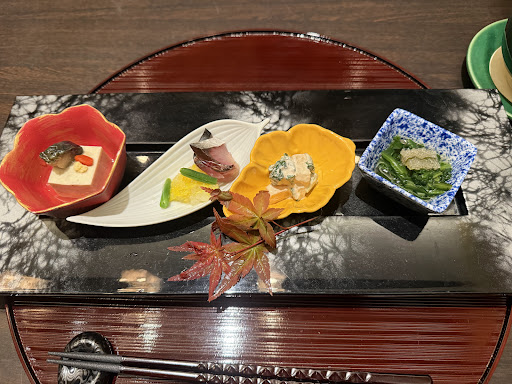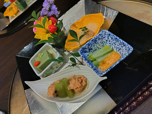 Read more素材の味を活かして目でも楽しめる料理でした。 残念だった所だけ書きますと、和食で前菜から赤出汁まで、このレストランの肝となる出汁を一切感じられませんでした。 最悪だったのは配膳してくれる年配の男性の方。何を急いでいるのかバタバタしている、料理を半分も食べていない状態で次の料理をと声掛けし、真後ろに出来たての料理が暫らく置かれる。 牛の溶岩焼きに関しては私達の真後ろのテーブルで焼物のお魚を食べてる最中にじゅうじゅうと焼ける音が永遠に。 急いで食べないと焦げると思い、かきこんで食べなければいけない始末。 落ち着いて食べる事が出来ませんでした。 今までこんな事があった事がないだけにビックリです。 素材の味はしっかりしていて美味しく頂きましたが星3...