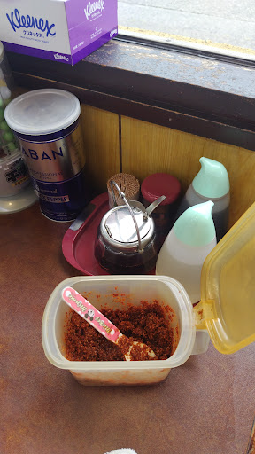 Read more飲んだあとに辛ネギが旨いと紹介された。結局飲み会のあと行くことはなかったが、ランチに訪問。マップに投稿されてる写真からデブの勘が働いたメニューが、メンマトッピングデラックスラーメンと餃子。それを注文。しかし「もともとメンマ入ってますのでダブりますよ」といわれ、ひよってしまいメンマトッピングはキャンセルした。結果的にトッピングありでも良かったかも。「味ご飯もサービスです」といわれ頂くことに。 まず餃子と味ご飯が到着。餃子はニンニクが効いた好みのやつ。テーブルにあるのが醤油酢七味辣油。他に辛味噌?。辛味噌辣油で食べようとしたら、辛味噌ではなく辣油の実の部分だった。つまり胡麻油風味の唐辛子(辣油の出がらし?)。逆に辣油の方は一切固形成分なしの油のみ。これは出がらし多めが好みの私には好都合。良き。 味ご飯は具なし五目ご飯というイメージ。少し具はあったかも。味は薄め。 そしてデラックスラーメン着丼。予想より器も盛りもでかかった。この店は注文時にスープ(醤油しお味噌カレー)から選ぶスタイルのようだったが、デラックスラーメンにはとスープ選択の記載なし。結果、味噌だった。 具材たっぷりで、好みの粘度あるタイプの味噌スープ。それにトッピングのバターやチャーシュー脂や生卵でさらにカオスになる感じ、良き。 お腹も心も大満足。そしてもともとオススメされてた辛ネギトッピングはデラックスにはなかったので次回...