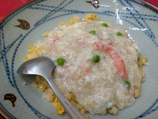 ここで評判の蟹餡掛け炒飯と蕎麦がゆが食べたかったので、同意して入店。