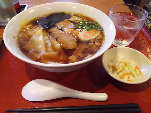 Read more白河ラーメンと言ったらワンタン麺!てな具合にワンタン麺を注文。すばらしいのはメニューが出てくる早さ! 麺は細めの手打ち縮れ麺で熟成されているので、透き通っています。トッピングはバラエティーに富んでて、ラーメンなら550円という値段もうれしい限りでした。 本当に残念なのが、スープがしょっぱい事・・・。チャーシューも美味しいのに、噛むと豚バラ肉の脂の旨味と甘味の後でお肉の隙間から醤油の塩気が出てくるので、美味しいのに余韻に浸れないのが残念でしょうがない。醤油の量を加減してくれたら星五つあげ...