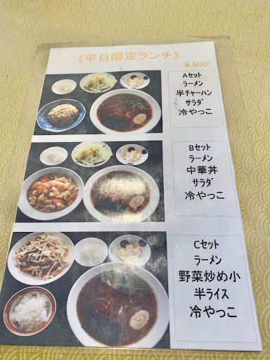 手元に銘々膳が届いて、いやはや驚いたボリューム満点。普通に一人前の白河ラーメン、半膳とは言うが、ほぼ一人前の中華丼。サラダの鉢、冷奴。味がよく私は朝抜きだったので、夜ももういらないやと全部平らげてしまった。美味しかった。接客もグー‼️値段ランチ税込¥800。安過ぎません? ...