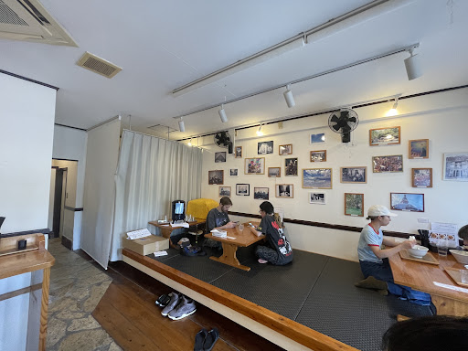 Read more駐車場は店前3台・建物裏3台です。店内は明るく、壁には店主が行った世界中の写真が掛かったギャラリーのようです。入口左に券売機があり、左上の目が行くポジションに周りより一回り大きなボタンが4個、これがオススメの商品のようです。今回は「(+特製200円)鶏白湯らぁ麺(800円)」合計1050円の緑色のボタンです。それ以外にも、基本の2種のらぁ麺(鶏醤油らぁ麺・鶏白湯らぁ麺)とトッピングのボタンの組み合わせが出来るので御検討を。 メニュー写真は横2分割ですが、上の段が鶏醤油らぁ麺のトッピング事の見本写真。下の段が鶏白湯らぁ麺のトッピング事の見本写真です。 店内は小上がり2卓・カウンター横並び3席・3席・1席かな?食券を渡して、セルフで水をグラスに注ぎ着席。メニュー表に書いてある通り、鶏白湯は少し待って登場。黒いうめーしです。 店主のラーメンへの情熱とこだわりは、HPと店内メニュー表の裏に載っているので見て下さい。スープはトロトロですがベタベタではなく、麺は中太平麺と書いてありますが沖縄そばと違って細いですがスープに負けない味のある麺です。トッピングの鶏チャーシューは、シットリして燻製の薫りがあって(持ち帰りがあれば酒のツマミにしたい位)、豚肩ロースの部分は脂と肉の合わさった柔らかい美味しさ、三枚肉は炙ってありますがよくある焦げ臭いとは違い香りを立たせる炙りで味も香りも楽しめます。味玉は、黄身の濃い味に出汁が染みて、よくある醤油の強い味玉とはまるで違う美味しさです。これだけ原材料や手間暇掛けて、この値段で出来るのはスゴいと思う。自分は頼みませんでしたが、替え玉や麺大盛もありますので男の人は店員さんに聞いてみるのもいいかも。 美味しいらぁ麺ですが、味が濃い物が多く連日通うのはオジサンには無理な感じで、若い男の人にはピッタリだと思います。あと!足の短い自分には、...