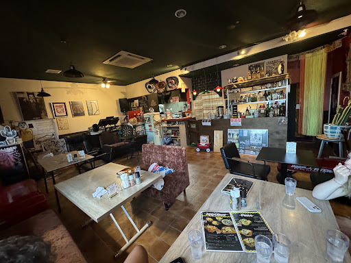 外観は陽気な🇲🇽🌵メキシカン風、店内はDJテーブルも有り、一見🔫ギャングが屯してそうな格好良い喫茶🍸バー風⁉️ Instagramに👀出ていた、マンチーしてそうな⁈😎店主らしき人は見当たらず、たぶん📲電話に出られた女性の方1人が調理/接客/会計もしてくださいました