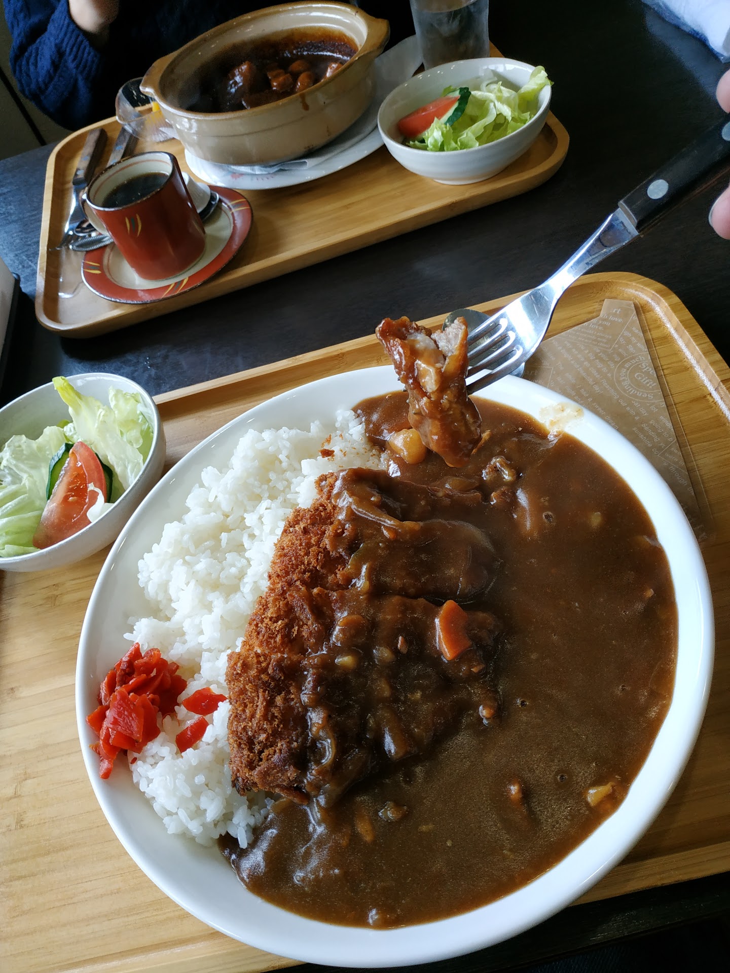 Read more西伊豆の仁科にある、トンカツやナポリタンで有名なお店です。 今回は、当方の大好物であるカツカレーを注文しました。 カレーのルーは家庭風の安心出来る味に、深い出汁を加えている印象でした。 トンカツは絶妙な揚げ加減と、独自の味付けでビックリしました。 カレーも良いですが、白米とトンカツの方が相性良いかと思いました。 少々値段高めですが、西伊豆でトンカツやカツカレーを求めるならお勧めです。 今度は評判のナポリタンを試したいですね。 難点は立地にあります。 駐車場は狭くは無いのですが、縁石により非常に入り辛いです。 更に、変則的な信号のある交差点沿いにあるので、入るのが大変でした。 しかし、接客は良くクレジットカード使えた...