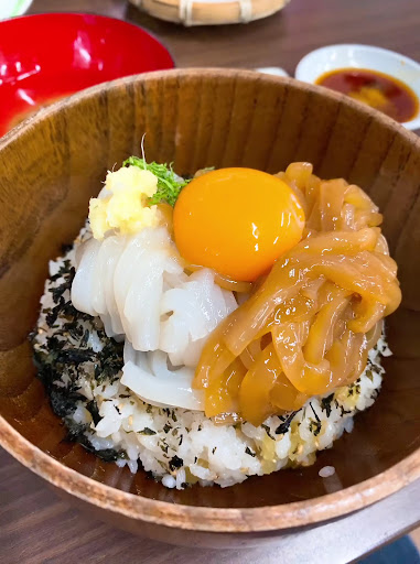 Read more日曜日のお昼時に行きましたが、賑わっていました。 行列というわけではなく、長くても20分位の待ちではないでしょうか。 いつもイカを食べるので、今回はボードに書いてあったカツオ漬け丼¥1,000と伊勢海老味噌汁¥1,000を食べました。 伊勢海老味噌汁は小ぶりな伊勢海老一匹が入っています。 味噌汁自体は伊勢海老の出汁がイマイチな薄味でした。 カツオ漬け丼は、初めて食べましたが中々美味しかったです。 またカツオの量も多くてご飯を埋め尽くしていました。 丼に味噌汁が付いていますが、伊勢海老味噌汁よりも付いている味噌汁のほうが美味しかったです。 私もですが、バイクツーリングのお客が多かったです。 連れがイカ様丼を食べましたが、こちらは変わりなく美味しかったです。