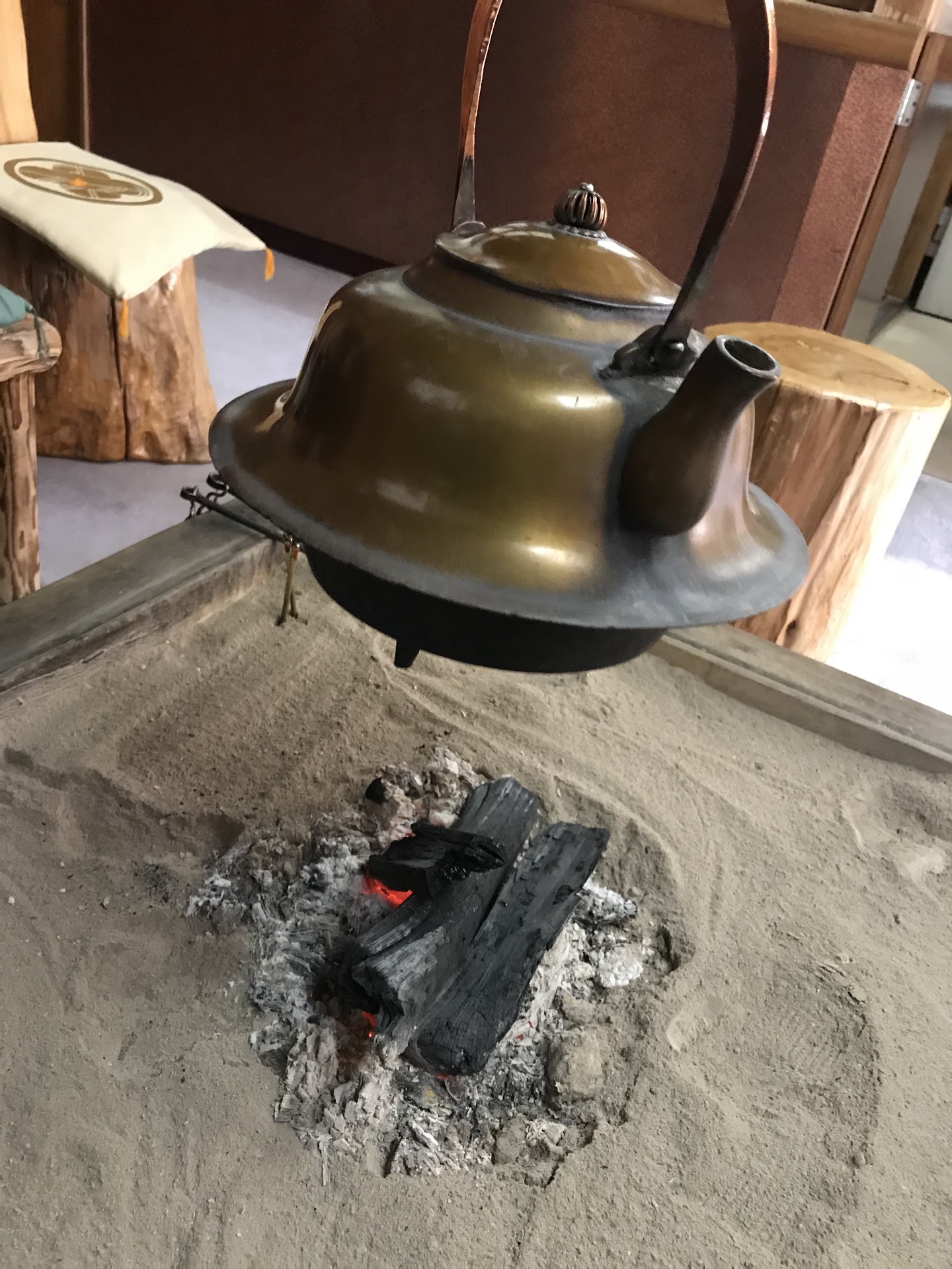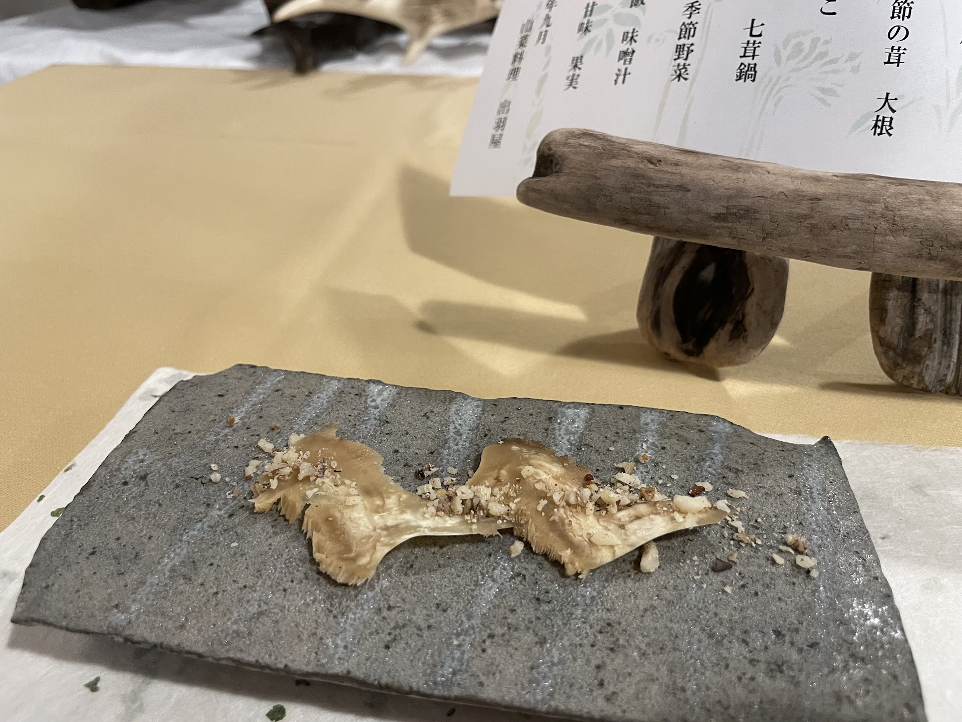最初からすべてのテーブルにカセットコンロがセッティングされているのがおかしいです。待つこと5分くらいで籠膳が提供されました。やはり地酒に合いそうな山菜の数々でした。胡麻和え、おひたし、くるみ和え、味噌和えなどで、ゼンマイ、ノラボウ、フキ、ウドを頂きます。ゼンマイの胡麻和えがいかにも精進料理らしく美味しいです。...