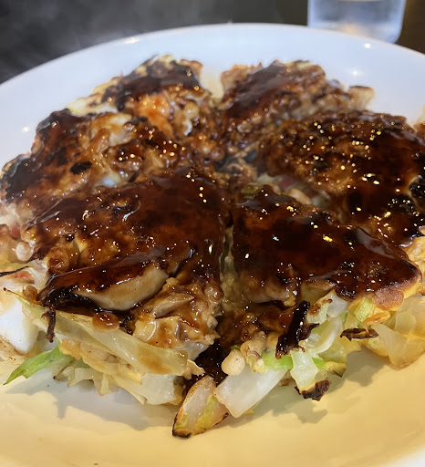 I love okonomiyaki, and I have eaten in a lot of okonomi restaurants. This one stands out to me as one of the best. The sauce is the same as most places, the mayonnaise the same, and that makes up for a lot of the taste, BUT it’s the texture and the presence of the other ingredients that make it great. The cabbage is perfectly cut to the size where they can be soft but still have crunch. The pork and other meat toppings are tender and are cut to make it easy to eat with chopsticks. It’s just very well done. The restaurant is a bit old and the outside is a bit dark which makes it looked closed, but take the chance and enter. It’s classic Japan serving a classic dish in the best way possible. My order: Pork okonomiyaki with shrimp and green onion. (You add your own sauce, mayo, nori, and bonito flake powder to your own liking at your table, which I really...