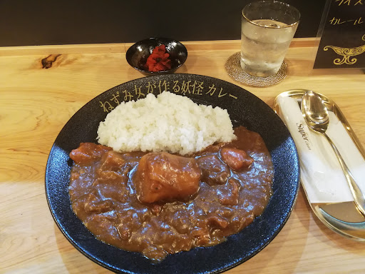 Read moreお腹を空かせた友だち数人と甲子園口の商店街を歩いていたら、面白い名前の「ねずみ女が作る 妖怪カレー」さんを見つけてしまいました。誰が何を言うわけでもなく、僕たちの興味の周波数は完全一致。入り口看板前で店名を読んではワクワクしながら看板と店内とお互いの目を見合わせては「入ってみようや」の目の合図を感じながら何度も交互に確認する一同。「ねずみ女」と「妖怪」という重要な要素は入り口だけでは解決できなかったので、確認するために中へ。 カウンターで一同、思い思いのカレーを注文。私は、カツカレーと卵とハイボールを注文しました。 店員さんはお二人で女性の方と男性の方だったのですが、お二人ともお綺麗な方だったので、僕たち一同が着席後すぐに感じていた疑問を解決してくれ!という思いをビンビン背中に感じながら「お二人ともお綺麗ですけど、どちらがねずみ女さんなんですか?」と聞いてみましました! そしたら、衝撃の答えを聞く事ができましたので、ぜひ皆さんも「ねずみ女が作る 妖怪カレー」さんで美味しいカレーとお酒に舌鼓を打ちながら、食事の会話を楽しんでください◎ また、ねずみ女が作る...