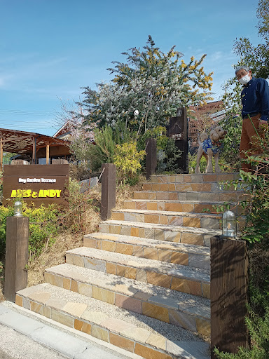 Read more近所なのでどんなお店かな?と行ってからハマってます^ - ^看板犬アリスとマスターが外までお迎えにきてくれたり、見送って下さったりする時もあります。高台にあり景色もよく店内も明るく清潔で、看板犬もよく手入れされていて犬臭いとか全くありません。ドッグランもあり(登録制)食事ができるまでや食後もワンちゃんを遊ばせれます。食事もおいしく、なんとドリンク付きで幸せなおまけに、お値段リーズナブル。これはハマりますね^ - ^看板犬アンディは、いつもはいませんが、迫力満点のとっても可愛いワンちゃんです。駐車場の入り口が入りにくいのだけ、なんとかしてもらえないかなと思うけど、どうしようもない感じ(T . T)エアロつき、シャコタンの方は要注意です。自分の車は無理なので、近くの駐車場にとめて歩いて行きます^ -...