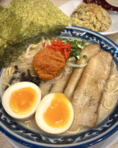 Read more本日9月30日オープン豚骨ラーメンつけ麺専門店 今回はレセプションでお招きいただきました! トップは名物レッド明太豚骨ラーメン1.380円 とろみのある豚骨に博多明太子が堂々と鎮座 スープに少しずつ溶かし随時味の変化を堪能 ピリッと辛みと塩みが後を引く癖になる味わい ブラック黒マー油豚骨ラーメンは葫ががっつり 醤油の深みもプラスされて思わずリピ確な一杯 麺はもちもち麺と博多麺の2種類からチョイス 今回はプツッと歯切れの良い博多麺でオーダー ロングな焼豚もツルッと飲める軽やかな脂と柔度 〆の中毒性抜群!にんにく炒飯はこれだけで主役 食後はスッキリ香り高いジャスミン茶が飲み放題 ランチセットは4種類から選べオール1.100円 お値段ぽっきりお得なちょい飲みセットもあり LINE登録とアンケートでホームランバーが贈呈 必ず貰える当たりくじのキャンペーンが目白押し 店名通り一口事に旨さ刻々と広がる癖になる味 また来る未来がもう見える渾身の一杯を是非! 厨房とホールのタッグが炸裂男女が切り盛り