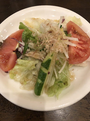焼きナスのサラダは野菜がシャキシャキして美味しかったです。連れも料理の味には満足のようでした。