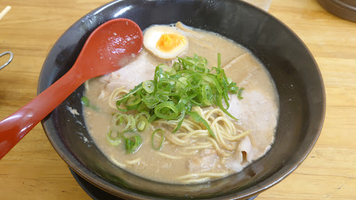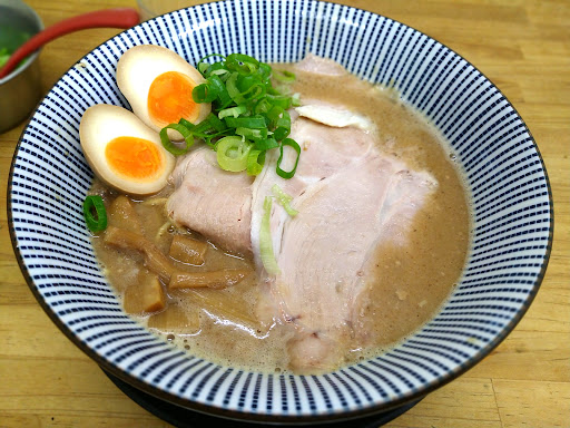 偶然見つけたお店ですが、"魚介豚骨"との看板に惹かれて相方と共に吸い込まれました。 当方は自宅でも煮干しスープを炊いて"おうちラーメン"を作りますが、セメント系まで作ってもドロドロ過ぎる濃いスープは作りません。豚ガラや鶏ガラを合わせる時もありますが、あくまで煮干しを引き立てる目的でのみ。 ここは看板にもありますが、ドロ系濃厚スープが売りのよう。楽しみです。 相方は豚骨醤油ランチ レギュラー(濃さ) 麺硬め+チャーシュー丼+から揚げ(一品)。当方は魚介豚骨醤油 濃さレギュラー...
