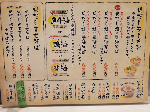 Read more交通の便が。。。 ちょいと残念。車やバイクがないと少し良い運動する事になるかも笑 さぁ、ここから始まる怒涛の誉め殺し!笑 結論書くとやばいぐらい美味しい。 スープ、チャーシュー、麺どれも最高! しっかりと貝の風味が凝縮されてる塩味のスープ。 そして、噛んだ瞬間に『うまい!』と言わされたチャーシュー なんやろ?あのチャーシュー、ほんまに口の中で踊ります。 こんなにもチャーシューうまいって思ったのはいつぶりか。 ラーメンほめろよって言われるかもしれませんがほんまに厚切りチャーシューはトッピングすべきです。 間違いなく美味しいです。 スープはといいますと、今回塩味にしたんですが貝との相性抜群で。 薄味なんですけど、きちんと味がある。 塩の味に負けない貝の味と風味。 スープと麺を絡めて食べたらもう。。。 止まりません。箸が笑 ではなぜ、⭐︎四なのか。 理由は次行った時に醤油を食べてみたいからです。 食べたら再評価します。美味しいでしょうけどもw ご馳走様でした。大阪から来た甲斐がありました! ご馳走様でした! あ、肉メシについてなんですが、これまた次回で笑 胡椒が効いてて最高に美味しいです。 めちゃくちゃ短いw では、...
