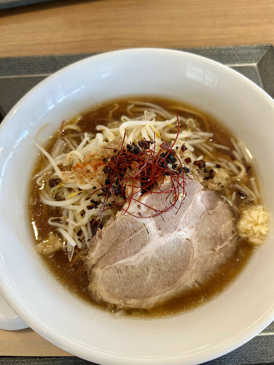 Read more初訪問です! 平日月曜日の12時前に伺いました! 店内はカウンターとテーブル席があります! 注文制の後払いシステムです! 平日にも関わらず老若男女問わずお客さんが入っていました! 駅からも近く立地も良き! 今回頂いたのは ⚫︎にぼ四郎らーめん1100円 ⚫︎チャーシュー丼380円(480円ですがラーメンを頼むと100円引きに!) です! 二郎系なので麺量150か200(それ以上は追加料金)とヤサイニンニクアブラの量選べます! 今回は麺量150ヤサイ基本ニンニク少なめアブラ基本でお願いしました! その他追加料金でマシマシなど出来るみたいです! 太麺にも関わらず提供スピード早くてすごいなぁと! 見た目のビジュも良き! あまり二郎系は食べないササですがやりすぎてない感じが嬉しいです!(ビビリなだけ笑) 煮干しが効いた醤油スープで結構万人受けするお味だと思います! にんにくは少なめでも結構ガツンと効いてます! これが二郎系なのですね! 麺は平打ち気味の太麺でちゅるちゅる! 150でもお昼時にはボリューム満点に感じられました! チャーシュー丼は細切れ?ほぐれたチャーシューで味のしっかり入ったどんぶりです! 二郎系好きな人には分かりませんが、初心者やラーメン好きな人には満足してもらえる美味しいラーメンでした! 大満足ランチでした! 店員さんも丁寧で元気あ...