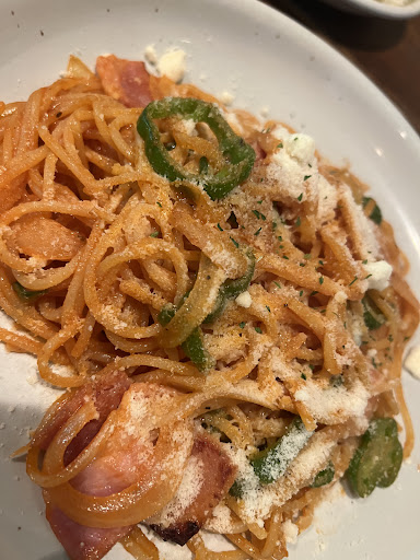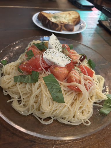 もう一品、ペペロンチーノも頼んだが、これもまたシンプルながら素晴らしかった。アルデンテに茹でられたパスタに、ガーリックと唐辛子の風味がしっかり絡み、オリーブオイルの香りが食欲をそそる。辛さと塩気のバランスがちょうどよく、ついフォークが止まらなくなる味だった。