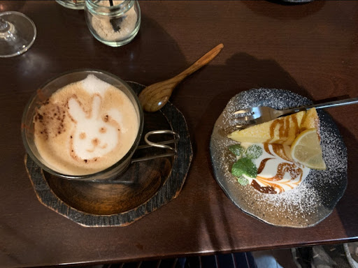 チーズケーキは甘めなので甘いの好きな方にはオススメ。 カフェラテはうさぎのアートが書かれていてとってもラブリーでお味も美味しかったです。