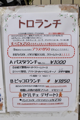 ランチメニューは ・パスタランチ1000円 ・ピッコロランチ1850円(パスタ&メイン) の2種類。