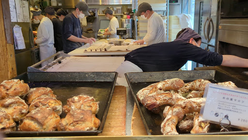 並んでいる間も、店外に漂う焼きたてパンの香りが食欲を刺激し、期待感は高まるばかり。 「これだけ並んでいるのだから、もしかしたら売り切れのパンもあるかもしれない」という一抹の不安もよぎったが、ガラス越しに見える厨房では、多くの職人さんたちが忙しそうにパンを焼き上げている。その活気ある様子を見て、品切れの心配はないかなと安心しました。