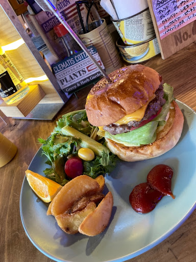 平日のランチタイムにお邪魔しました。 ご夫婦で経営されてるようで1人でお邪魔しましたが、オーダーする時も奥様がさりげなくおススメや人気バーガーなど教えて下さり楽しいランチタイムになりました。(週末はお客さんも多くテイクアウトのオーダーなどありお忙しいようです。) アボカドチーズバーガーのランチセット1595円(セットの飲み物は今日のフレッシュジュースよりミックスベリージュースをチョイス)を頂きました。付け合せのフライドポテトも揚げたてホクホクで塩味もちょうど良く、ハンバーガーも紙のシートに入れずに食べていたら大変な事になってただろうなと思うぐらいボリューム。幸いオープンして一番客で他にお客様がいらっしゃらなかったので開けれるだけ最大限に口を開けてバーガーにかぶりついて、バンズ・パティ・アボカド・チーズを口いっぱいに頬張り、幸福感に浸り自然と笑顔がこぼれました。 食べているとパティもただのミンチ肉ではなく中に肉のかたまりがあったりして食感を楽しめ、肉の臭みなどなくジューシーで本当に美味しかったです。ボリューム満点ですが、胸焼けを起こすようなイヤなひつこさもないのでペロリ完食。最後スマイルカットのオレンジがお口直しにバッチリでした。流石にもう1個おかわりとは言えなかったのでまた、今度絶対お邪魔します。並びのカレー屋さんとハシゴしたいくらいに好きなお店が増えて嬉しい1日になりました。お会計時paypay使えます。レシートにある「美味しいハンバーガーつくります!」と...