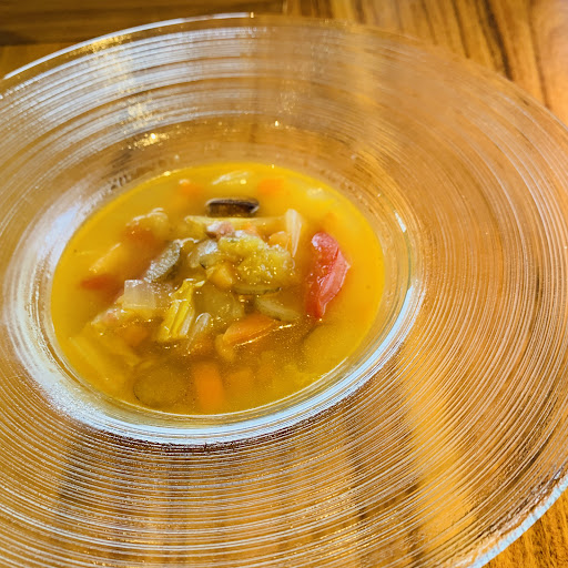 食べている途中で、本日のスープ、ミネストローネが登場。 具沢山で、飲みごたえあります。