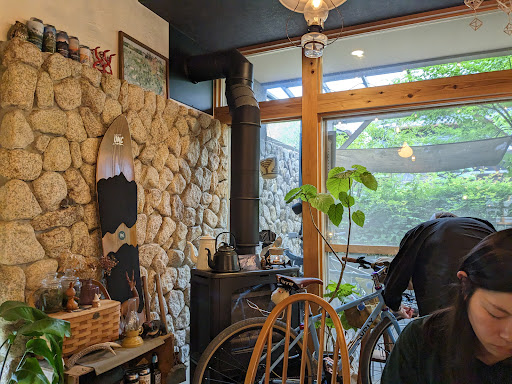 Read more木の造りに大きな窓、庭にはテラスがあって開放的❤ 薪ストーブが印象的で、あっかい店内は静かに時間が流れてる・・・ (´艸`)