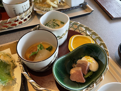 配膳の仕方も疑問でした。 私たち客が座っている、店員さんから見て手前の椅子と椅子の間から、奥の客へ配膳。 もちろん奥のテーブルまでお料理が届かないので、そのまま手渡しされました。 広い通路側から運べば届くのに。 配膳カートから離れたくないのか、横着しているように感じました。