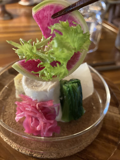 *ずわい蟹と南瓜のシュークリーム *真鰯のマリネ ジャガイモのビューレの上にイカ墨の揚げパンの上に鰯のマリネに生ハム *カラスミと新生姜のフィギュア ケーキみたいに新生姜が何層にもなっていて口の中に入れると、複雑な味の中にも生姜がいいアクセント✨