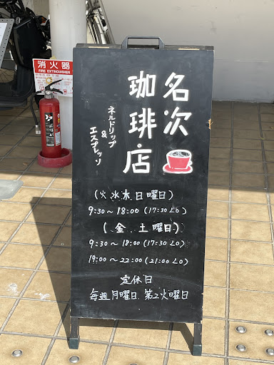 Read more2025年1月初訪問 本命のカフェが行列でいっぱいだったため以前から目をつけてた名次珈琲店さんへ!実は以前17時前に伺った時はすでにクローズしてたので改めてリベンジ。ランチタイムを少し過ぎてたので楽々着席。ただランチタイム過ぎてたので逆に売り切れ商品もありました💦駐車場は建物2階に位置しており雨に濡れずに店内入れるのでこれは助かります。 今回僕はハムチェダーチーズトマトサンドとアイスアメリカーノ、奥さんはローストビーフサンドとホットラテ。フードはどれも美味い!パンの味がしっかりしててレタスもシャキシャキ、ローストビーフサンドはビーフもさることながらテリヤキソースが特に美味い‼️ アイスアメリカーノは深煎りでもスッキリ飲みやすい。ホットラテは奥さん曰く、エスプレッソが濃い上にボリューム満点💯ラテアートも最後飲み干すまでしっかり残っててマスターの腕が上手なんだなぁと感激してました! 場所は西宮苦楽園の閑静な住宅街に位置してるため静寂さ、雰囲気、味ともに夫婦2人大満足🈵。ただ少しお高いかなぁ笑笑。けどまた来るな😏次は本日売り切れだったハヤシライスやサラダボウルをリベンジしたいです!そしてデザートにもチャレンジですな。 大変美味しく頂き...