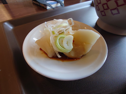 ■水餃子 ミニサイズの1口タイプ 厚めの皮に少なめの具材なので皮を食べている感じが強い 次回からはラーメン単品でいいかなと思うレベル