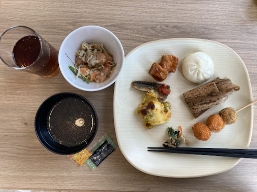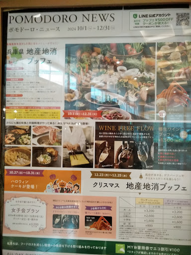 Read more阪神甲子園球場すぐ北(阪神高速3号神戸線を挟み北へ20m)"HOTEL HEWITT 甲子園1階" オールデイダイニング ポモドーロのブッフェスタイルのランチへ。ランチもディナーも土日祝日も全て同じ価格のブッフェスタイルです。1人3200円(シニア割で2600円/ ドリンクバーも税サ込) ドリンクバーにはアイスココアも自動でサーヴ。果汁100%のジュースも………果汁を使用したムースが多種類❗ トマト🍅ジュース風にサラダ菜を畳んで乗せた "ガスパチョ"は珍しい。にんにくとオリーブオイルが入った冷たいスーブ……野菜サラダも種類豊富/ コールスローも有ります。白身魚とブラックタイガーを使ったグリルなどのオーブン料理も豊富。豚ロースの冷しゃぶも有ります。Pastaは スパゲッティ以外にもペンネをトマト🍅ソースで煮込んだものも……ホテルブッフェらしく種類豊富なので 少しずつお替りして………今の時期は 野球のシーズンでも無いので 閑散としています(開店11時30分〜約30分は私1人貸切り状態/ その後カップルが一組/ 私がチェックアウトの頃 4人組が) コレからの時期は 鍋物もブッフェに追加されます。+1500円で 🍷🍸樽ワイン 樽スパークリングが飲み放題。ランチは 11時30分と13時30分で入替えですが 今日のような日は ※※今日は予約があまり入っていませんのでゆっくりしていただけます※※とチーフスタッフが……多少の時間超過はOKなのか?ホテルの中庭の緑を臨みながら。🚃🚃阪神甲子園駅の西口〜徒歩3分 阪神甲子園駅を出ると自動販売機も牛丼の吉野家も阪神タイガースカラー "LAWSON"の中にはマスクを始めとした "マスコットキャラクターのトラッキー" グッズがたくさん。帰りに "COROWA"地下2階のイオンで買い物も出来ます。阪神甲子園駅は特急/快速急行など全ての電車が停車します(各停に乗っても 西方向/ 三宮方面は西宮駅で 東方向/ 梅田や難波方面は尼崎駅で……特急/ 快速急行に) 🌽🍅地産地消の兵庫県産の野菜を使用したブッフェ。コスパは良いと思います❗サイコロ厚揚げ使用の麻婆豆腐は...