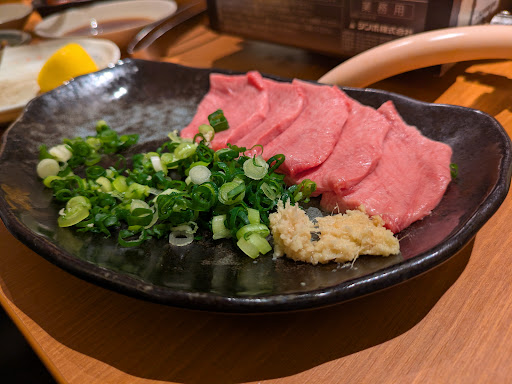 たんの刺身 人生初の体験。 心地よい歯ごたえのあと、クリーミーな旨みが口いっぱいに広がる。