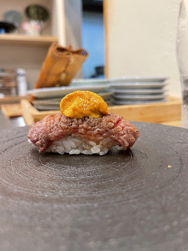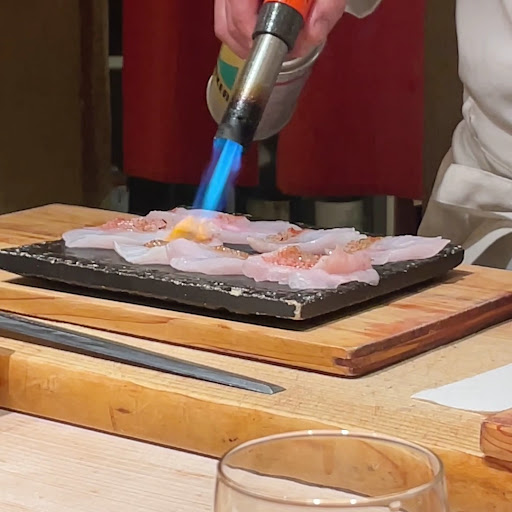 Read more当日予約でディナーに訪問。 カウンター8席+テーブルの店内は、街のお鮨屋さんというよりかは、カジュアルな和食料理屋さんのようなお洒落な雰囲気。 料理は8000円のお任せコースのみで、ツマミと握りをお客さんに合わせて亭主の気分で提供。 お腹の具合に合わせて最後に追加ができるシステム。 お鮨は酸味の少ない甘めの白シャリ。 炙ったネタや、葱を合わせるなどのアレンジ鮨から、正統派の握りまでネタに合わせて幅広く提供されます。 この日はとりあえずお店にある全てのネタを。 どこまでがお任せコース扱いかは分からないが、お会計から考えると何貫かは追加の模様。 まず一番気になったのは提供の順番。 ニ貫目に白髪ネギが入った「トロたく」ってどうなんだろう笑? しかも次に出たのが鳴門の鯛。 緊急事態要請でお酒も飲めないし、口の中のリセットができない。 口の中に残り続ける白髪ネギの香り、、、 せっかくのネタがもったいない。 どうやら後半に差し掛かった常連さんへ提供する物と同じ物を握ってだしていることが原因みたい。 初めての、しかも当日予約のピンで、満席にテイクアウトまでこなして忙しそうな大将。 文句は言わないがどうなのかな?って思う。 あと、バーナーで炙るお鮨が5貫出たが、ガスの臭いが気になった。 佐賀牛などの旨味が強いものはまだ良いが、キンキやのど黒など、繊細な旨味を楽しみたいものには、香りが強すぎる。 もう一つ付け加えるなら、ネタの温度かな? 冷蔵庫から出したての鮪とかは本当に勘弁して欲しい。 塩釜の鮪の腹部分。 せっかく良いネタを使ってるんだから、素材を活かして欲しい。 最後にダメ押しでもう一個。 ネギとか、ツメを使うやつの後は下駄拭いて笑! 客がおしぼりで拭いてるのを気付かないのは、気配りがなさすぎるよ。 帰り際に、ネタの良さや、近所という利便性を鑑みて、順番とガスについて質問するも、どちらも「気分」で決めているとの事。 うーん。 色々ともったいないなって思う。 このネタの内容で提供方法を除けば8,000円は安いと思う。 大将若そうだし、人気店のエッセンスを取り入れたら、もっと良いお店になるのにな、、、 YouTubeでお鮨を学んだ人がいるくらいなのに、もったいないと心から思う。 「気分」というワードで直接伝える気が失せた。 願わくばこの投稿を大将がどこかでご覧になり、良いお店になる事を願って。