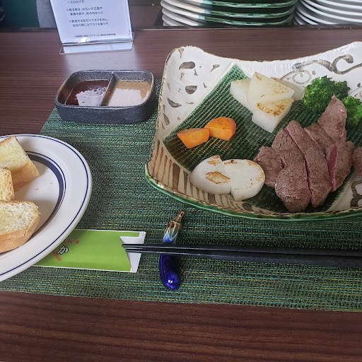 お肉は焼き加減を聞かれることはなくミディアムくらいで出てきました。 全体的には柔らかく美味しいお肉と思いましたが数切れ噛みにくいお肉がありました。 サラダはドレッシングがほとんどかかっておらず薄めです。 パンがあまりにもパサパサでバターが染み込んでる訳でもなく微妙でした。 大体こういうお店のパンって美味しいフランスパンかと思っていたので残念でしたが、トータル価格相応かと思います。
