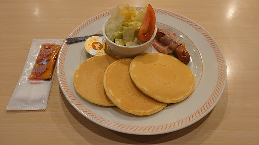 以下、1年前の感想↓ 2泊3日で宿泊ホテルの朝食会場なファミレス。 AM6から開店。 前回モーニングハンバーグしか無いんかいだったので、それ以外のメニューをセレクト。 豚汁定食、幕の内定食、バターミルクパンケーキのブランチプレートを発注。 ドリンクバー自由。 しかし、朝からよく食べれません。 朝食券が夜でも使えたら良かったのにね。 ちなみに、宿泊者はどうぞですが水曜日は定休日という、ち...