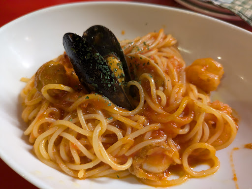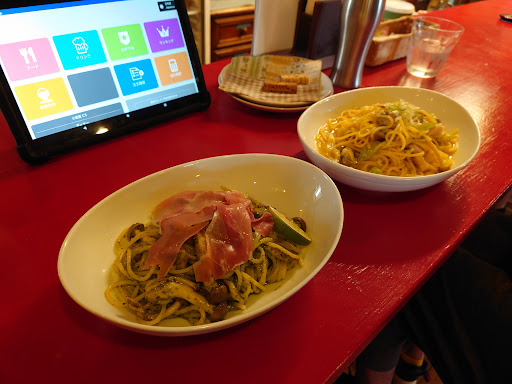 Read more14時過ぎに入店。外観、内装ともにそれっぽくて雰囲気良し。入ってきた客への対応はぶっきらぼう。必要以上に愛想しないのは好感。キッチンから美味しい匂いが漂ってこない。 スモールサイズのアンチョビとキノコのクリスピーピザはそれなりに個性的で美味しかった。 牡蠣とネギのペペロンチーノはなんと「汁スパ」!カルテにアーリオオリオペペロンチーノとは書いてなかったけど、汁物ペペロンチーノはどうかな???ただ単にペペロンチーノと言った場合にもニンニクとオリーブ油と唐辛子の組み合わせでやって欲しいなぁ。辛くもなかったし・・・。 ビックリしたのはペペロンチーノにパルメザンチーズを頼んだら「別料金です」と言われたこと❗️120円❗️頼んだけど・・・。 店の売りは生パスタ使用と言うことらしいですが、ウーン、生かなぁ・・・。少なくとも僕の知って...
