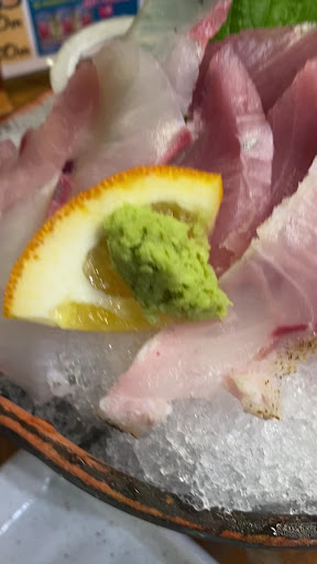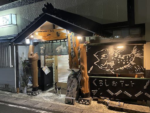 種子島で一番美味しい店を聞くと『魚匠一条』か『味処井本』とよく聞きました。 楽しみに来ました。 土曜の夜だからか店内はお客さんでいっぱい。 繁盛してます。運良くカウンターが空いており着席。Wi-Fiがあり携帯電話から注文出来ます。 なかなか種子島では珍しい。👍 刺身盛りの一人前、地魚ステーキ、飛び魚唐揚げ、あなご貝刺身を注文。 間も無く刺し盛り到着。福岡出身のお姉さんが刺身の種類を説明してくれます。その盛り付けとボリューム最高やん❗️もちろん美味い‼️ 地魚ステーキは、鯖、鯛、石垣鯛、しび。しびは、黒マクロの子供との事。勉強になります。 こちらはポン酢で頂きマス。 飛び魚の唐揚げは、下に揚げ出し豆腐があり、そのお汁につけて頂きました。肉厚でこれも美味しい。そしてあなご貝は、見た目もコリコリの食感も小さなアワビ。刺身、味噌和え、キムチ和えで出てきました。これも初めて食しました〜 美味しい〜焼酎が止まりません。笑 ビールの次は種子島の焼酎を頂きました。 しま茜の水割りを注文。なんと一合の徳利で登場‼️これが種子島の飲み方か⁉️ 安納芋と紫芋が原料との事で良い感じの甘味のある芋焼酎です❗️美味しい。 大将のご厚意でしまむらさきと黒甘露をおちょこで頂きました。同じ芋焼酎でも味が違うんですね❗️種子島の焼酎の違いもご説明頂きました。ありがとうございました。 旅行の方、仕事で来られた方、コチラは、種子島でしか食べれない料理と種子島の焼酎が楽しめるお店です。ぜひおすすめです‼️ ご馳走...