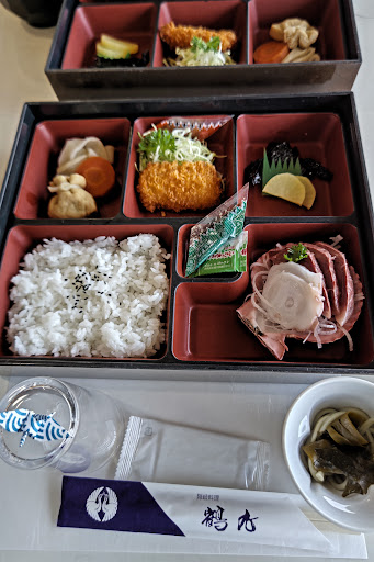 食事はまあまあ…🍱 鶴丸だから〜弁当のそばに小さなツルが折ってありました。