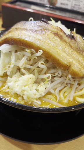 Read more初めてお邪魔しました。平日のお昼。店内広く待たずに入店。一人なのでカウンター席へ。最近のラーメン屋には珍しくテーブル席が多いので家族で訪れ易いお店かな。隣の家族にはお子様椅子が必要かどうか、どういったタイプの椅子が良いかまで尋ねてくれていて気が利くなぁと感心。女性店員さんお二人でやられていましたが女性ならではの視点ですかね。気持ち良いです。 豚骨ラーメンが売りの様ですが写真のチャーシューに惹かれて醤油二郎を注文。食べ切る自身が無いので小900円。小でも麺280で普通のラーメンなら大盛りです。そこから140gずつ増やせるようです。野菜も200g入りで無料トッピングのマシで+200g、マシマシで400g出来ます。もちろん食べ切る自信が無いのでマシません。平日ランチはライスも無料でしたがこちらもお断りしました。トッピングは有料350円のチャーシューのみです。チャーシュー食べたかったので。本家の二郎を食べたことがないので比べてどうかは分かりませんが十分美味しいラーメンでした。コシのある太麺、凄くシャキシャキなもやし、それに負けないスープ。そして厚みは控え目で横長に大きいチャーシュー、炙ってあり香ばしいだけでなくトロトロ食感。トロトロのためにあえて厚切りではない(普通のラーメンのものよりは厚いです。2〜3枚分の厚みはあります)のでしょう。1枚350円、人によってどう感じるかですが、私は良い値段設定に感じました。食べてみないと分からないですね。 他に辛醤油二郎、まぜそばなどもありました。ただ、私以外のお客さん全員が豚骨ラーメンを頼んでいるのを見て次回は豚骨に挑戦しようと思います。豚骨は辛子高菜のトッピングが無料で替え玉150円(平日100円)との事なので替え玉しても二郎と同じ位の値段です。 会計は最近には珍しくレジで後払い。私はこっちの方が好きです。ごちそうさまをちゃんと伝えられるので。 着ていたセーターを汚した言い訳ではありませんが、私が小さいからなのかカウンターのテーブルが少し高く食べづらく感じてしまいました。ただ、そこから提供するカウンターの台?までも少し高いので前を気にせず食べられる様にとの...