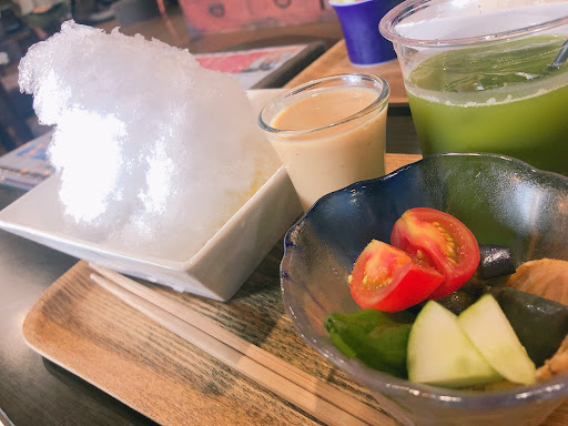 かき氷 (shaved ice) cafe. They don’t have many other food options but have lots of different styles of shaved ice. The coconut & almond jelly one was delicious albeit a little expensive. Interior was relaxing, with friendly young staff. Minimum of one order...