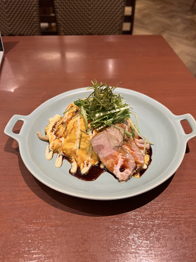 今回は珍しいポークと香味野菜のふわとろオムライスのレギュラーサイズを注文。甘めのソースとたまごがよく合う和風のオムライスでした。チャーシューのようなポークも食べ応えがあっておいしかったです。